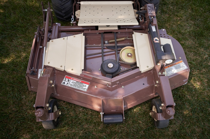 Geometrically engineered design with 7-gauge skirts withstands the brunt of commercial mowing. (3) Sentry? spindles and a triple-strength upper deck over 0.50-in. thick in stress zones. Formed double thickness hardened steel truss spindle plane is 0.269 in. - 7.6% thicker than 1/4 in. (6.35 mm)