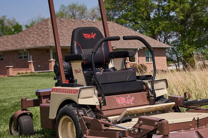 Iso-mounted Premium Comfort Seat. Features include a high-back, deep-cushioned, foam-padded Cordura®-covered, padded arm rests, padded backrest with lumbar support, coil-spring suspension and embroidered Grasshopper logo on seat back.